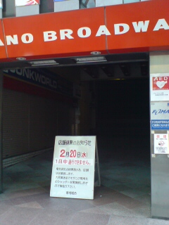んで、当選通知に『満員の場合は入場をお断りさせて頂きます』とか書いてあるもんだから、何をー!と思い、気合入れて行ったら1人しか並んでなくて、並ぶのも気がひけたので、中野を散歩だ!と思い、行った事無い中野ブロードウェイに行ってみたら『電気点検で全館休業』とかいうアチャーな日だったので、いろんな意味で神憑り過ぎて参りました。